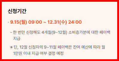 2025년 12월까지 신청할 수 있으며, 지금 신청해도 9월부터의 소비 실적이 모두 반영됩니다.