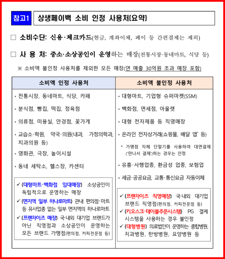 - 소비처: 중소·소상공인 가맹점 (대형마트·백화점·온라인 제외)
